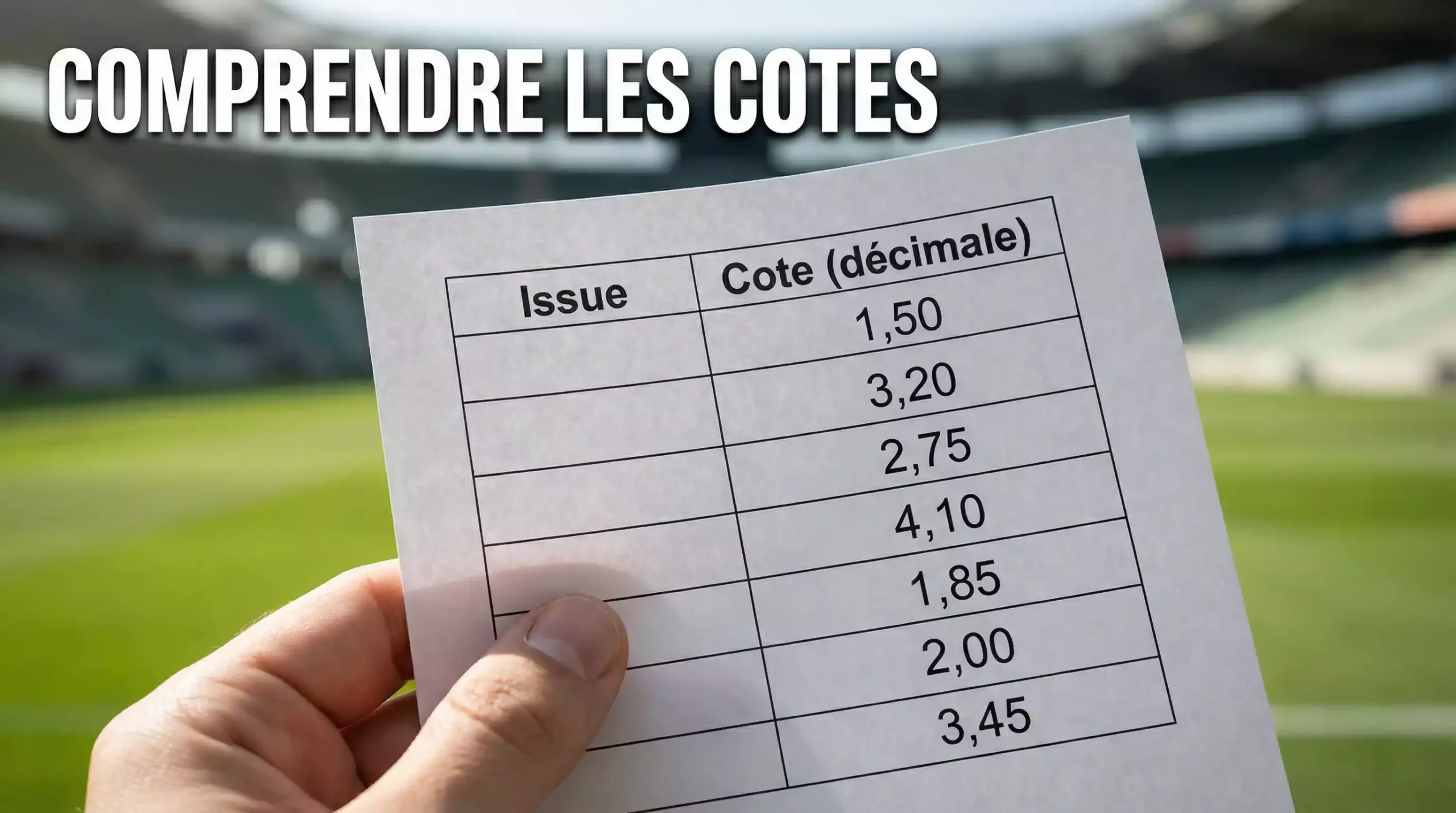 Ce guide va démonter le mécanisme des cotes, pièce par pièce. Les trois formats de cotation, la conversion en probabilité, le rôle de la marge, l’identification d’un value bet, la lecture des mouvements de cotes et l’intérêt concret de la comparaison entre opérateurs. Chaque section construit sur la précédente, parce que les cotes ne se comprennent pas par fragments — elles forment un système. À la fin de cette lecture, vous ne regarderez plus jamais une cote de la même façon — et c’est exactement l’objectif.